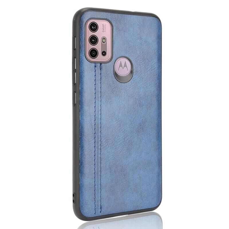 Για το Motorola Moto G30 / G10 Αδιάβροχο δέρμα PC μοτίβου αγελάδας ραψίματος + PU + θήκη TPU (μπλε)