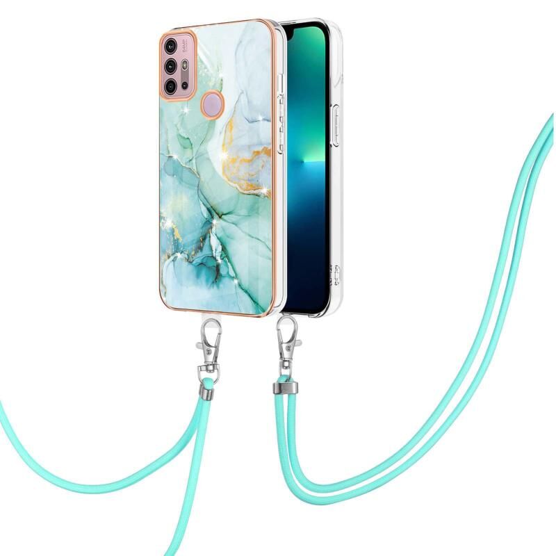 Θήκη κινητού τηλεφώνου TPU με ηλεκτρολυτική επίστρωση, σχέδιο μάρμαρου IMD με κορδόνι για Motorola Moto G30/G20/G10/G10 Power (Μωβ 001)