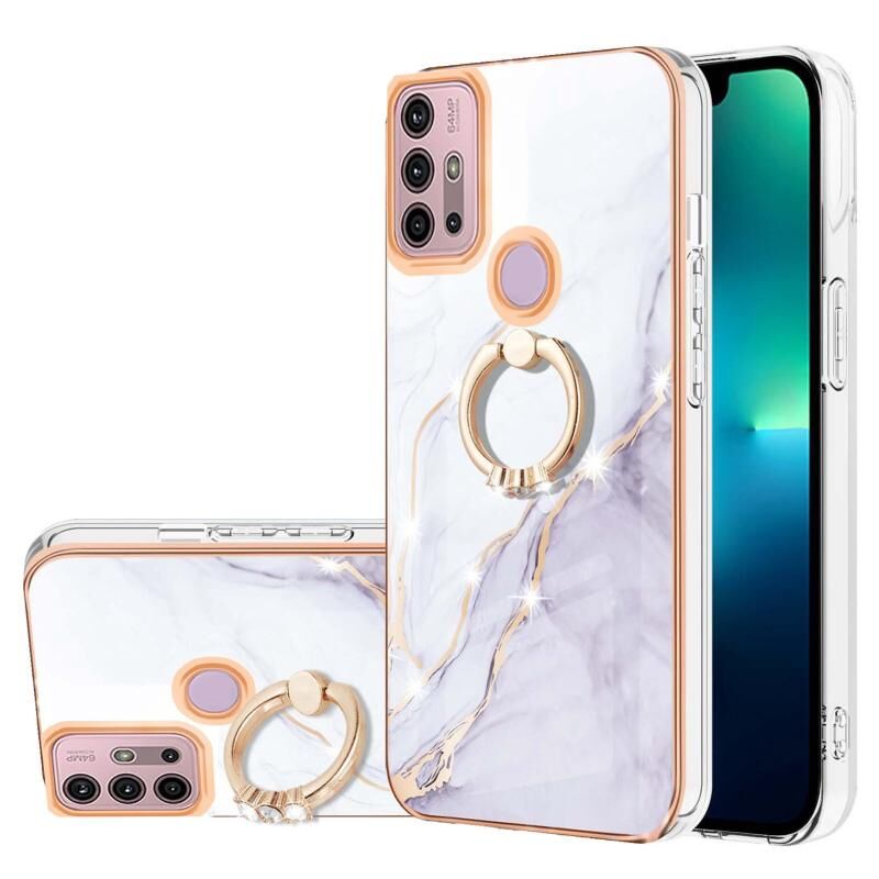 Θήκη κινητού τηλεφώνου με δακτύλιο στήριξης, αντικραδασμική από TPU IMD με σχέδιο μαρμάρου και ηλεκτρολυτική επικάλυψη για Motorola Moto G30/G20/G10/G10 Power (Μωβ 001)