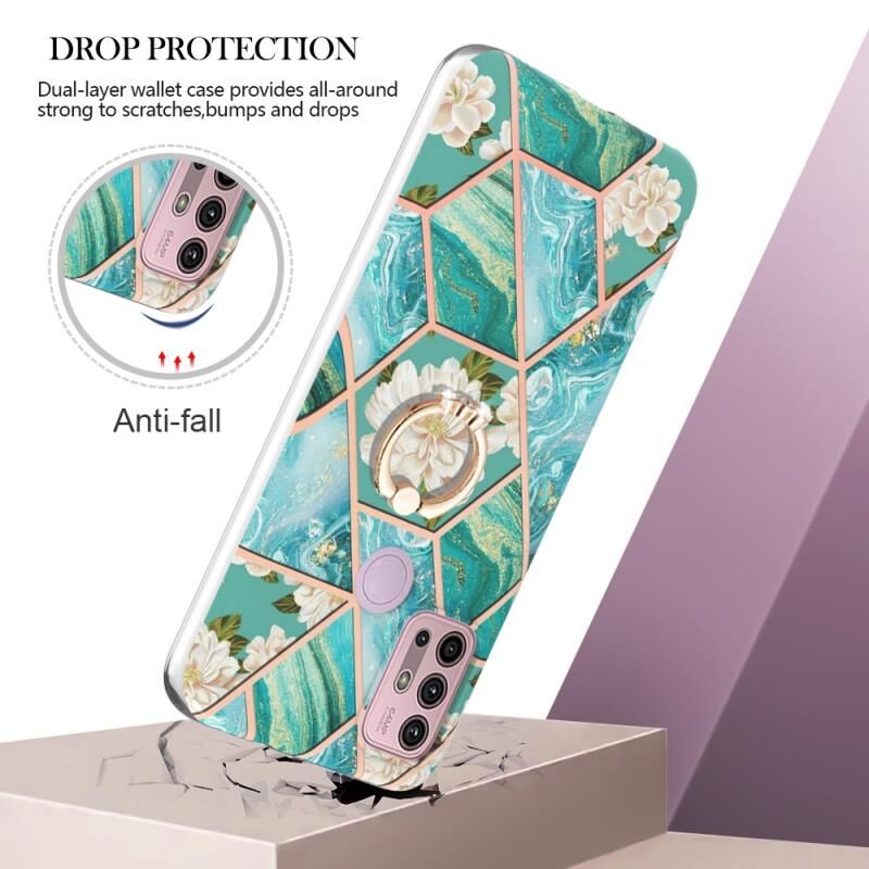 Θήκη για Motorola Moto G30 / G20 / G10 / G10 Power με σχέδιο μαρμάρου και λουλουδιών, από TPU με δακτύλιο στήριξης (Ροζ Λουλούδι)