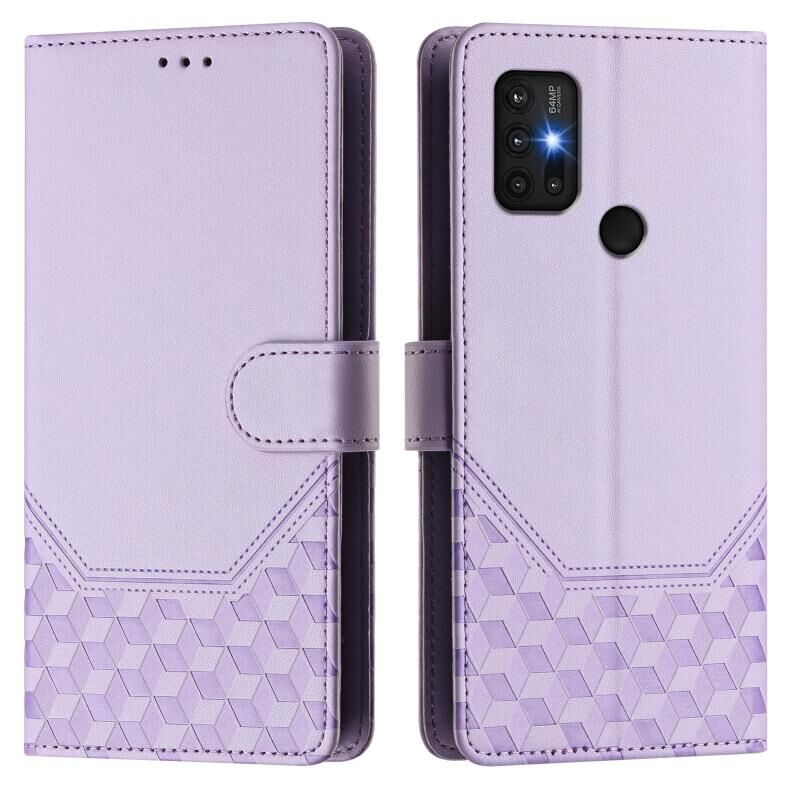 Για Motorola Moto G30 / G20 / G10 Honeycomb ανάγλυφη RFID δερμάτινη θήκη τηλεφώνου (ανοιχτό μοβ)