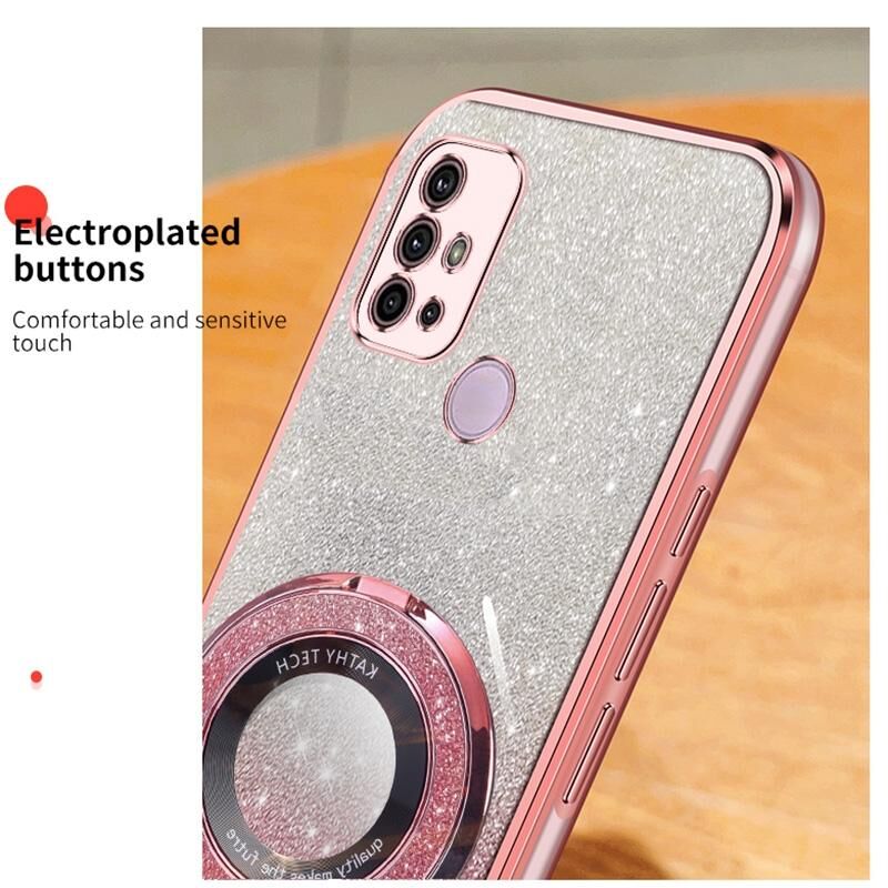 Για Motorola Moto G30 Επιμεταλλωμένο διαβάθμιση Glitter στρογγυλή θήκη TPU τηλέφωνο κάτοχος (Ασημί)