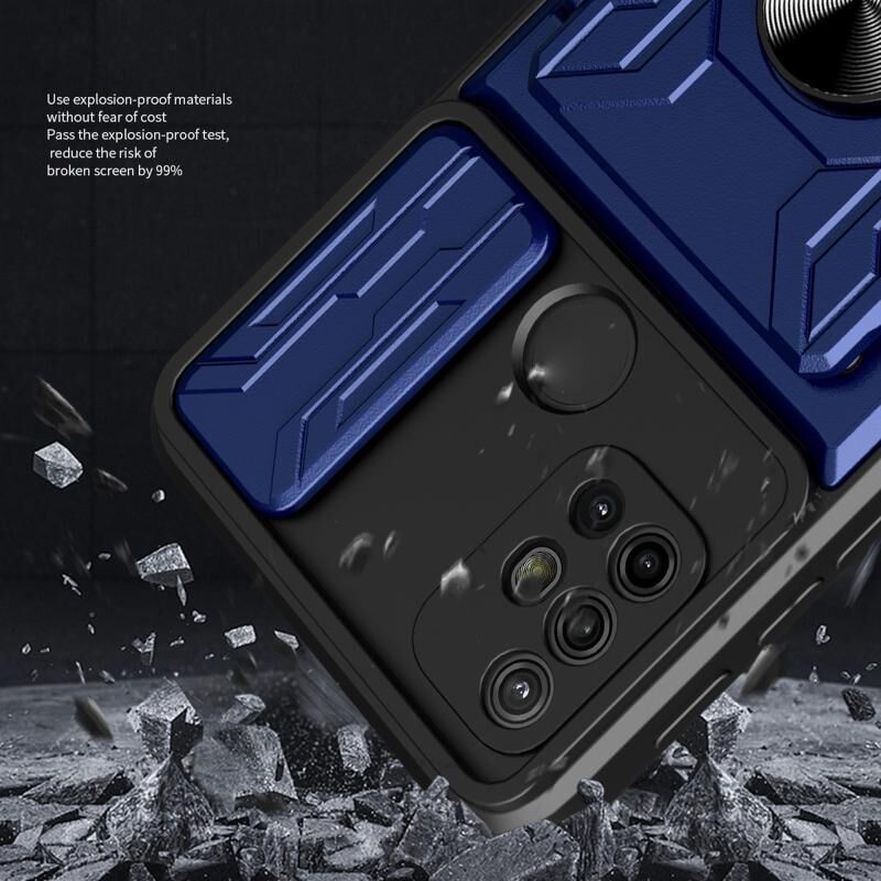 Για Motorola Moto G30 Συρόμενη θήκη τηλεφώνου Camshield Card (Μπλε)