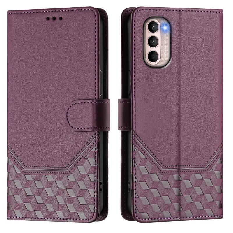 Για Motorola Moto G31 4G Global / G41 4G Honeycomb ανάγλυφη RFID δερμάτινη θήκη τηλεφώνου (βιολετί)