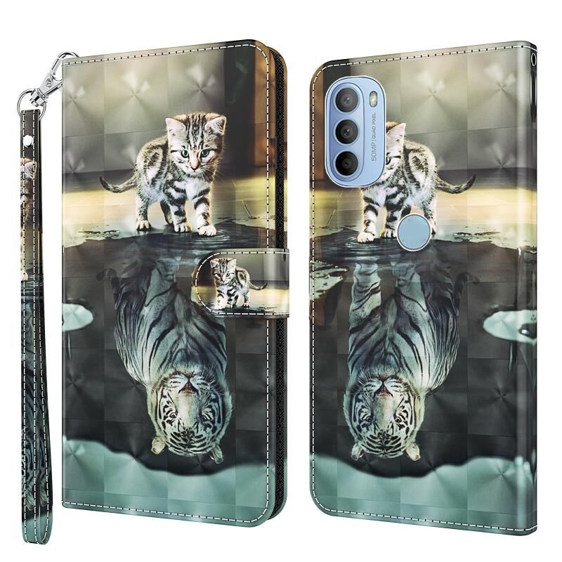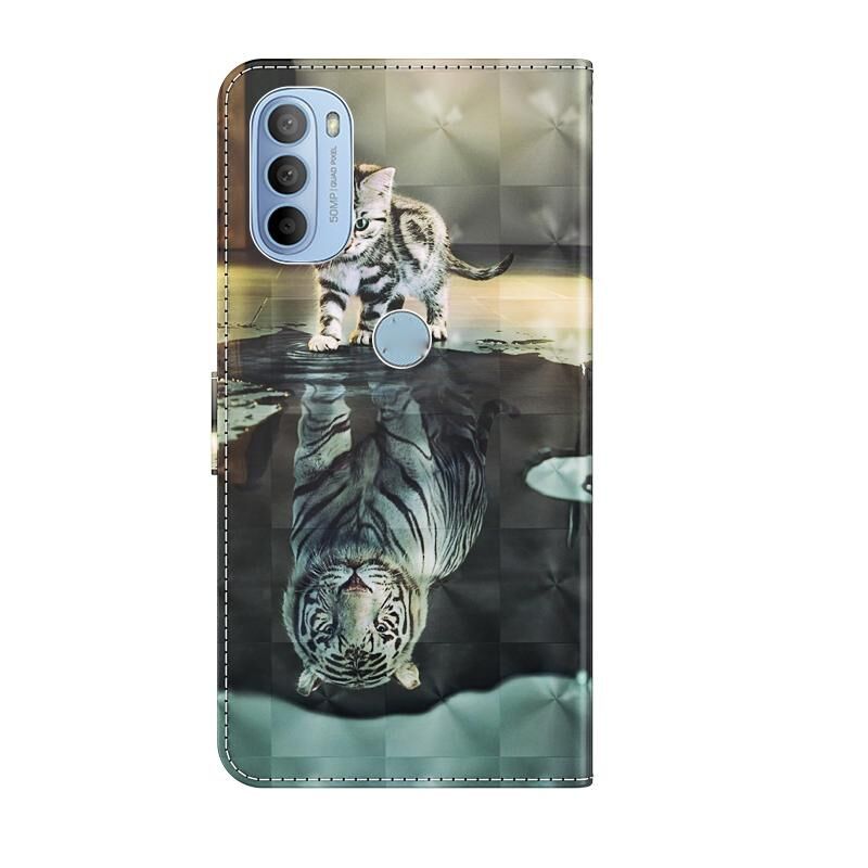 Θήκη κινητού τηλεφώνου για Motorola Moto G31 / G41, 3D σχέδιο με TPU + PU δέρμα (Γάτα, Τίγρης)