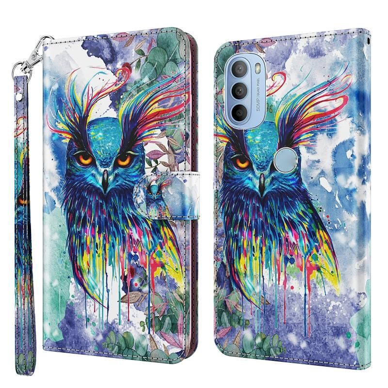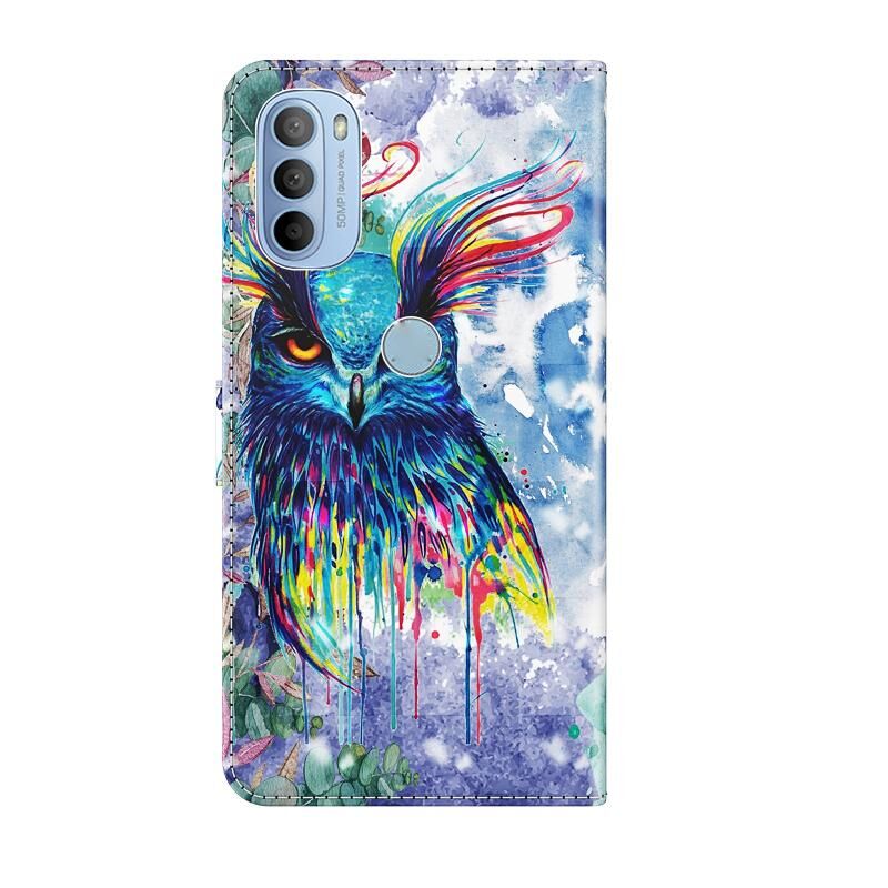 Θήκη κινητού τηλεφώνου για Motorola Moto G31 / G41, από TPU + Δερματίνη PU με σχέδιο 3D ζωγραφικής (Γεράκι σε υδατοχρώματα)