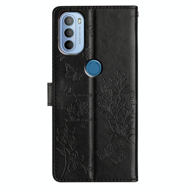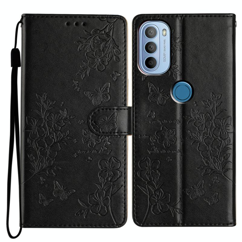 For Motorola Moto G31 / G41 Butterflies and Flowers Leather Phone Case(Black)
