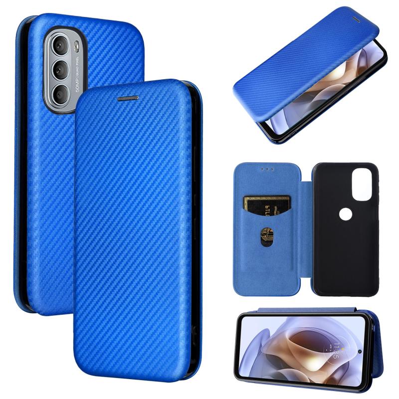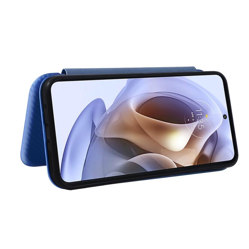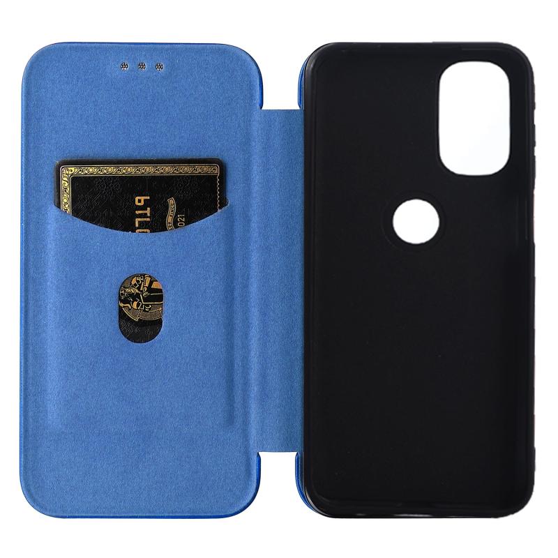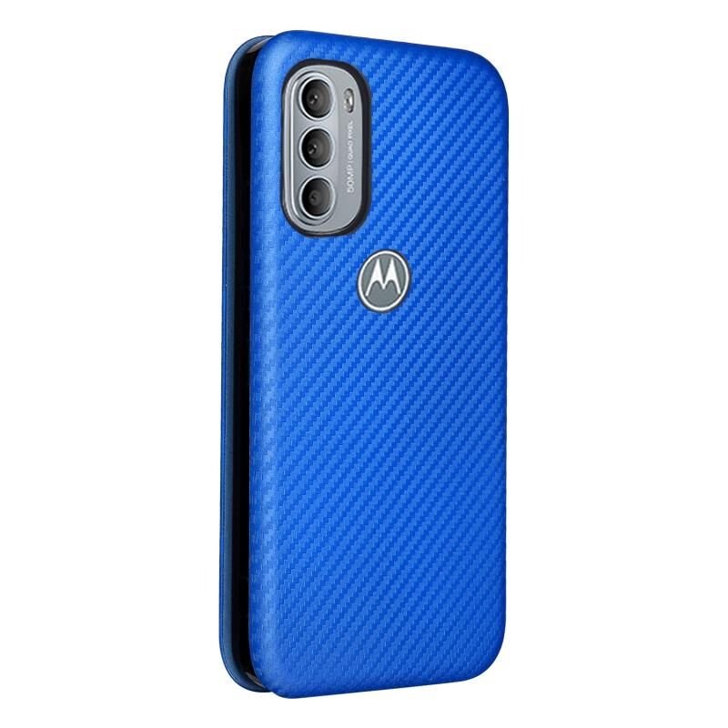 Θήκη τηλεφώνου από δέρμα με υφή ανθρακονημάτων για Motorola Moto G31 / G41 (Καφέ)