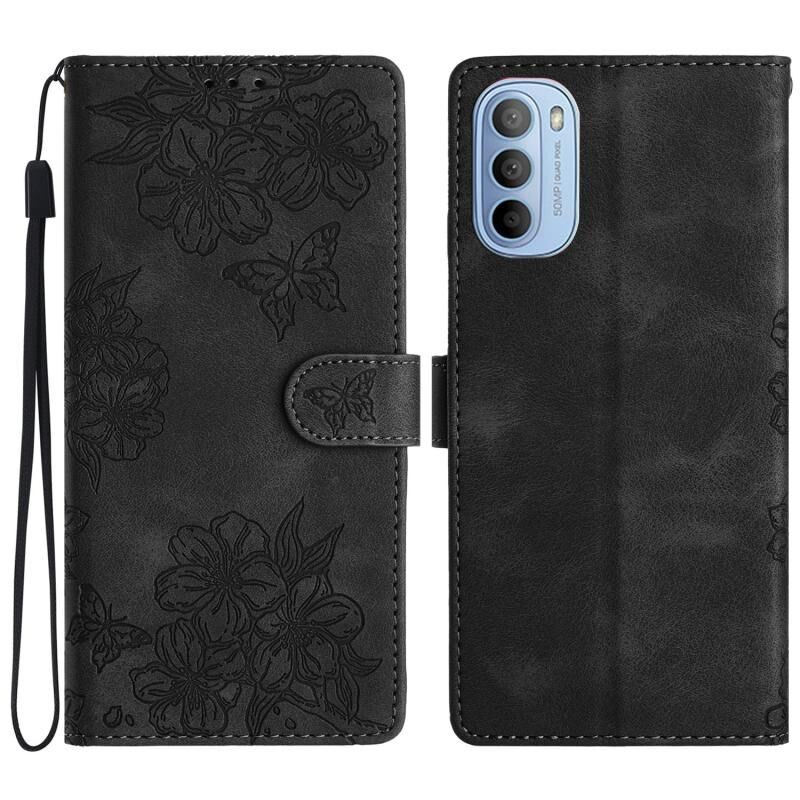 Θήκη τηλεφώνου Motorola Moto G31 / G41 Cherry Blossom Butterfly Skin Feel Embossed PU (Κόκκινη)