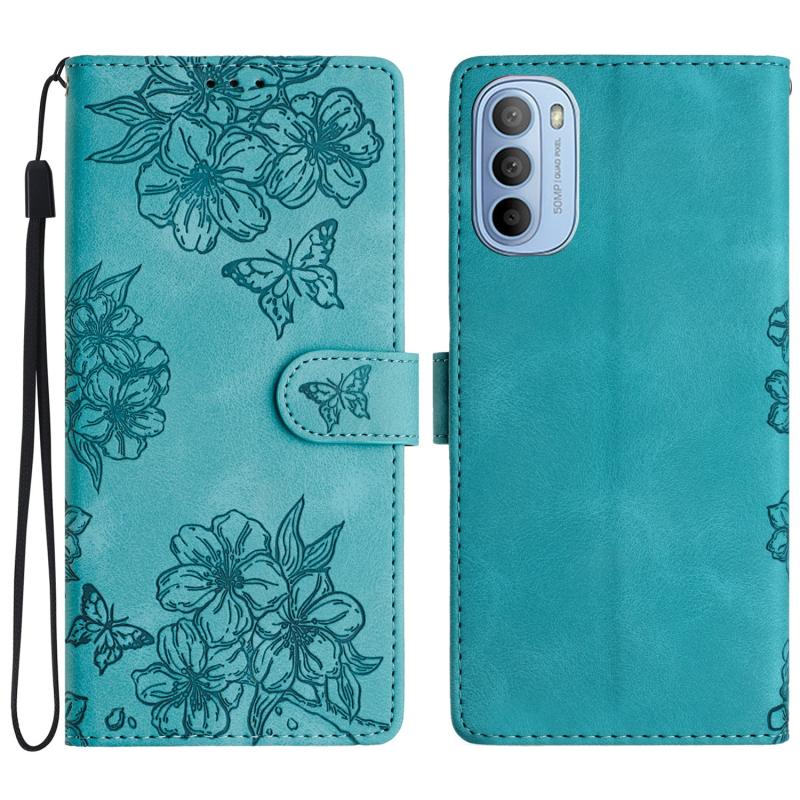 For Motorola Moto G31 / G41 Cherry Blossom Butterfly Skin Feel Embossed PU Phone Case(Green)