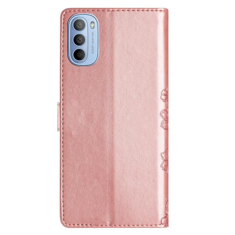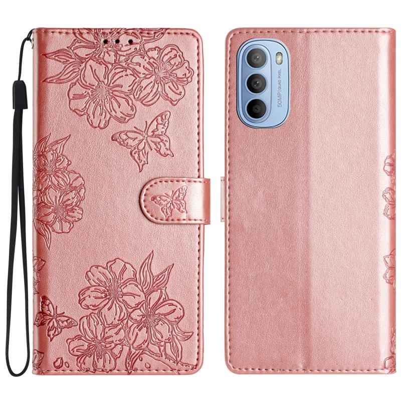 For Motorola Moto G31 / G41 Cherry Blossom Butterfly Skin Feel Embossed PU Phone Case(Rose Gold)