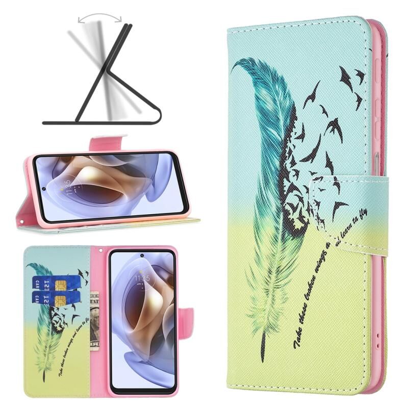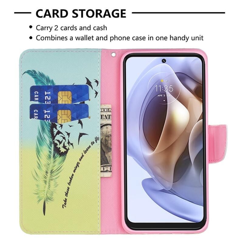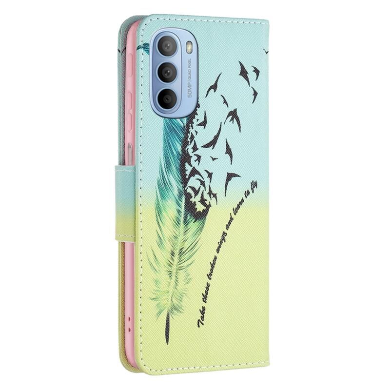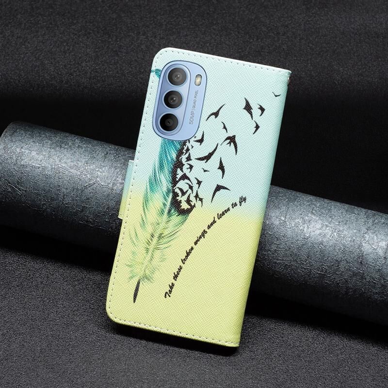 Θήκη τηλεφώνου δερμάτινη με έγχρωμο σχέδιο (φτερό) για Motorola Moto G31 / G41.