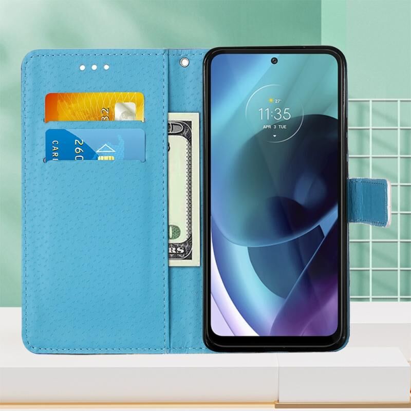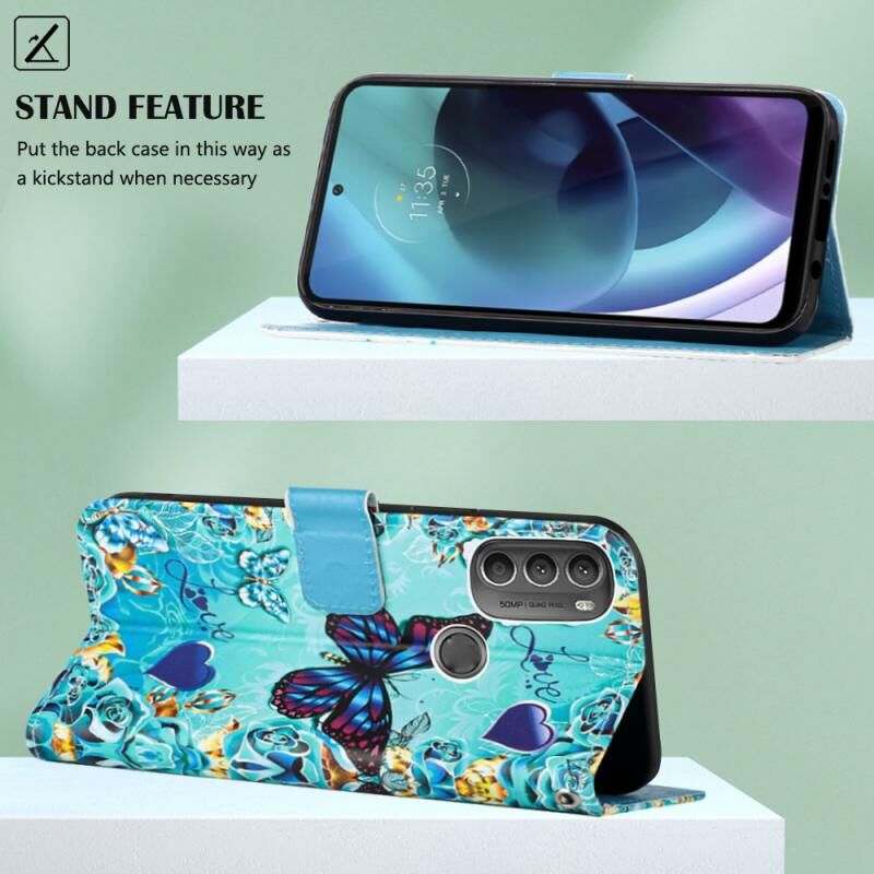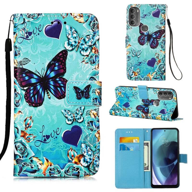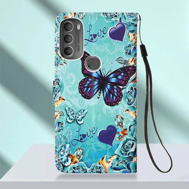 Θήκη κινητού τηλεφώνου από δέρμα με απλή ύφανση και έγχρωμο σχέδιο για Motorola Moto G31 / G41 (Καρδιά Πεταλούδα)