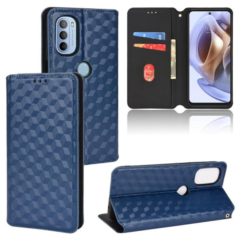 Θήκη τηλεφώνου από δέρμα με υφή κυβικού πλέγματος για Motorola Moto G31 / G41 (Μπλε)