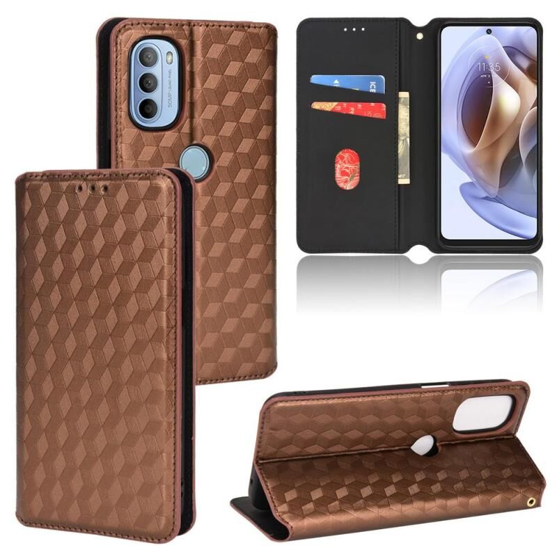 Θήκη τηλεφώνου από δέρμα με υφή κυβικού πλέγματος για Motorola Moto G31 / G41 (Καφέ)
