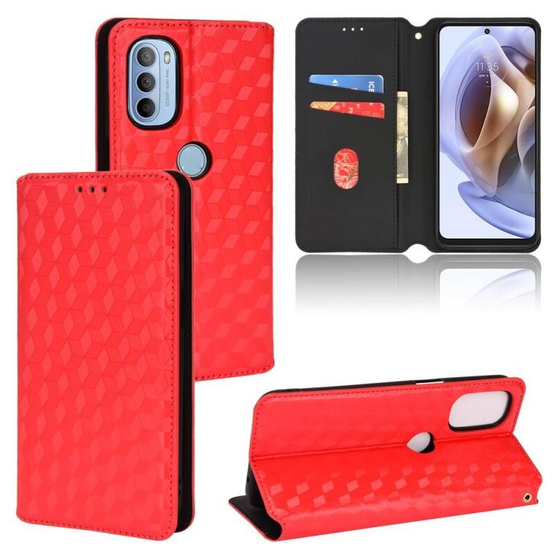 Θήκη τηλεφώνου από δέρμα με υφή κυβικού πλέγματος για Motorola Moto G31 / G41 (Κόκκινο)