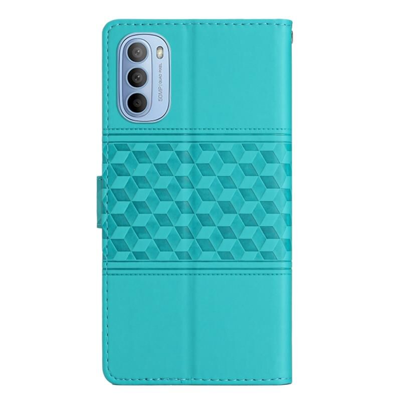 Για Motorola Moto G31 / G41 Diamond ανάγλυφο δέρμα αίσθηση δέρμα τηλέφωνο υπόθεση με κορδόνι (μπλε)