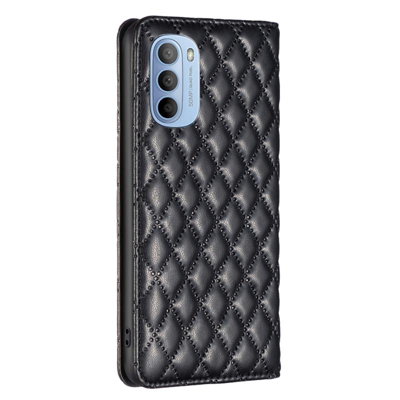 Θήκη τηλεφώνου τύπου flip από δέρμα με μαγνητικό κλείσιμο και διαμαντένια πλέγμα για Motorola Moto G31 / G41 (Μαύρο)