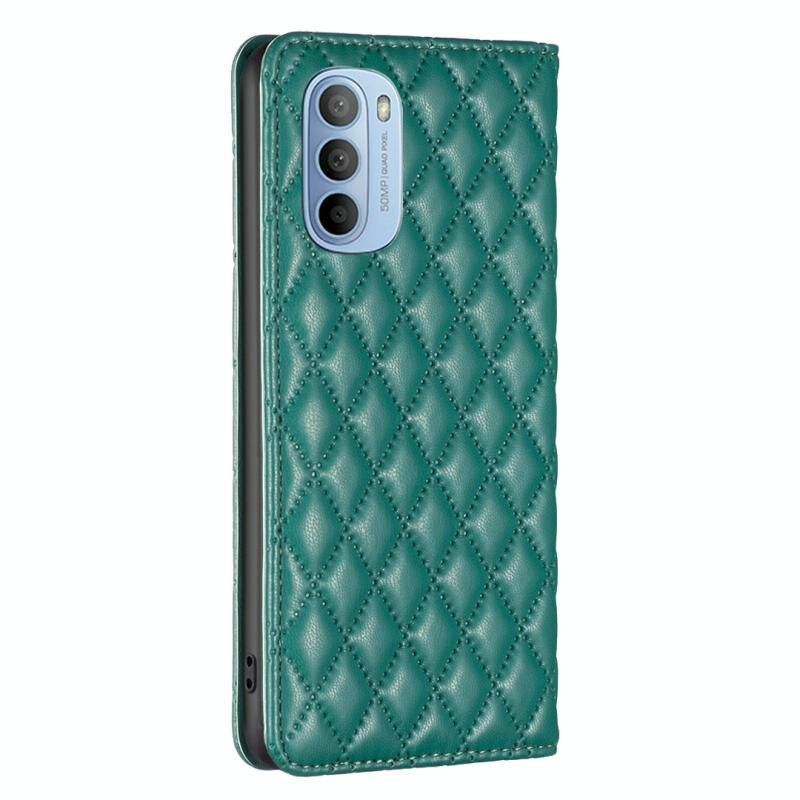 Θήκη τηλεφώνου τύπου flip από δέρμα με μαγνητικό κλείσιμο και διαμαντένια πλέγμα για Motorola Moto G31 / G41 (Μαύρο)