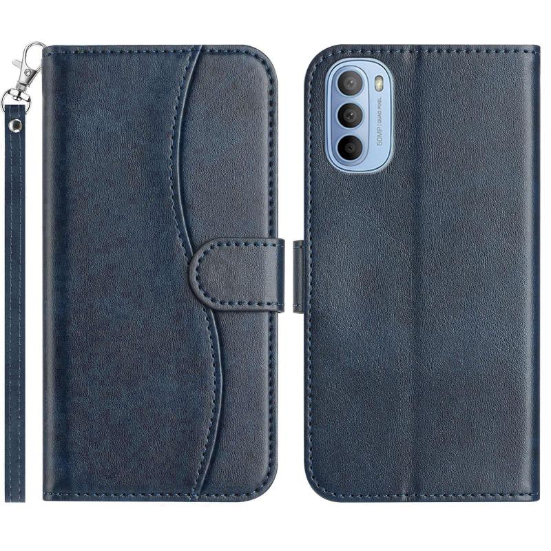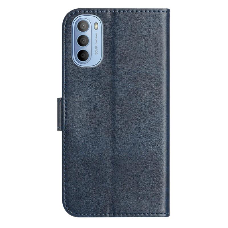 For Motorola Moto G31 / G41 Dual-Folded S-shape Leather Phone Case(Navy Blue)