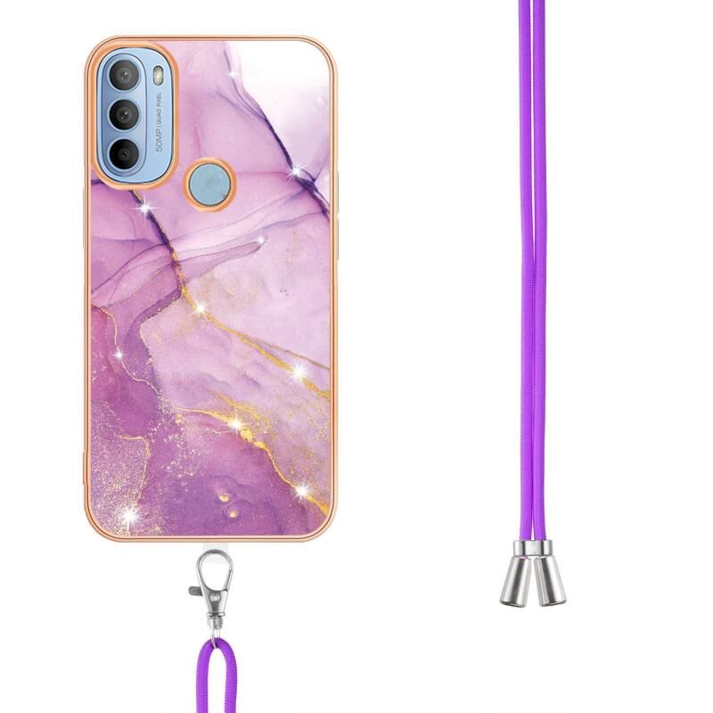 Θήκη κινητού τηλεφώνου Motorola Moto G31/G41 με επιμετάλλωση, σχέδιο μάρμαρου IMD, από TPU με κορδόνι (Μωβ 001)