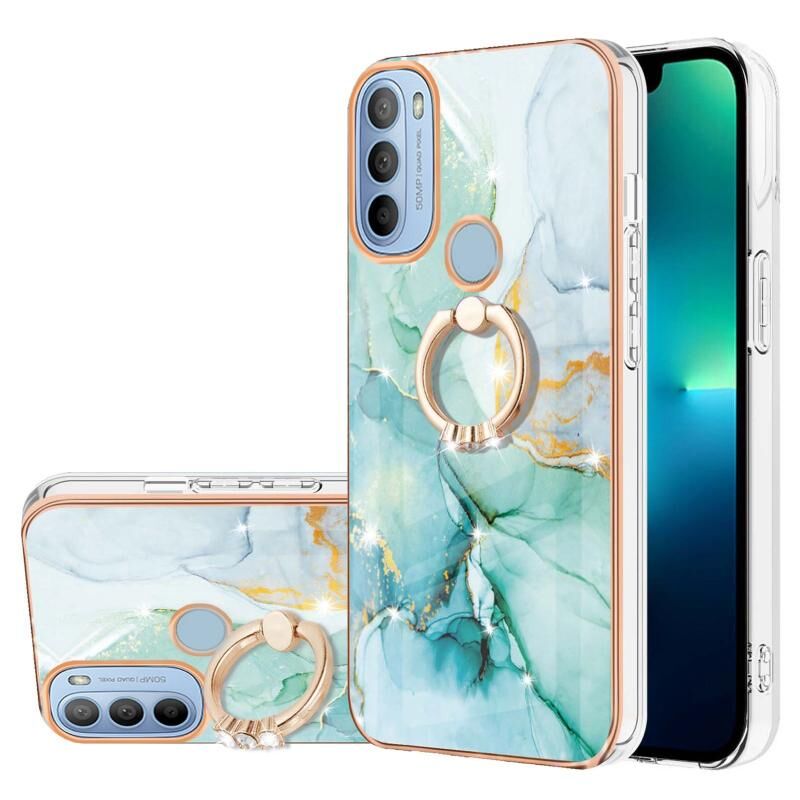 Θήκη κινητού τηλεφώνου για Motorola Moto G31/G41 με επιμετάλλωση, σχέδιο μαρμάρου IMD, αντικραδασμική από TPU με δακτύλιο στήριξης (Μωβ 001)