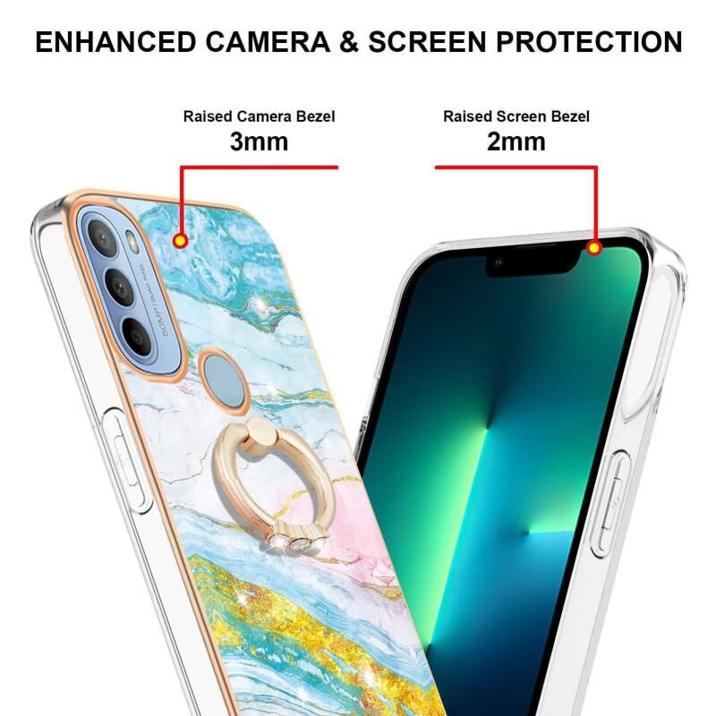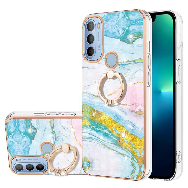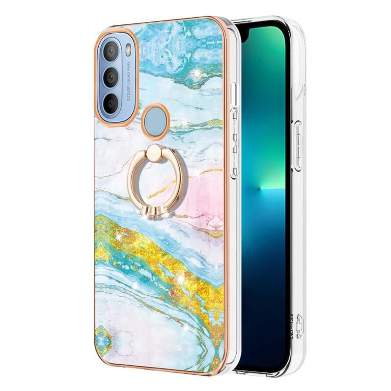 Θήκη κινητού τηλεφώνου για Motorola Moto G31/G41 με επιμετάλλωση, σχέδιο μαρμάρου IMD, αντικραδασμική από TPU με δακτύλιο στήριξης (Μωβ 001)