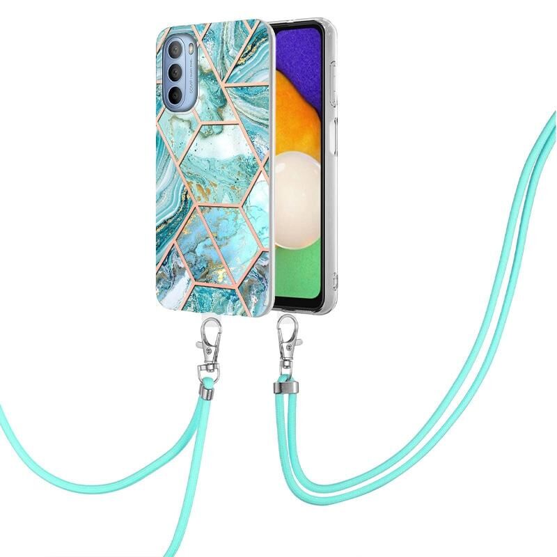 Θήκη κινητού τηλεφώνου TPU με γαλβανισμό και μαρμάρινο σχέδιο για Motorola Moto G31 / G41 με κορδόνι (Σκούρο Μωβ)
