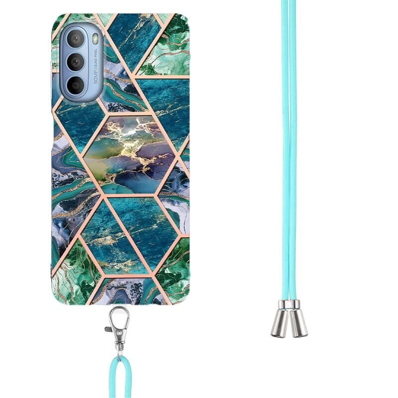 Θήκη κινητού τηλεφώνου TPU με γαλβανισμό και μαρμάρινο σχέδιο για Motorola Moto G31 / G41 με κορδόνι (Σκούρο Μωβ)