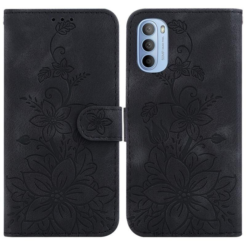 Θήκη τηλεφώνου από δέρμα με ανάγλυφο σχέδιο Lily για Motorola Moto G31 / G41 (Πράσινο)