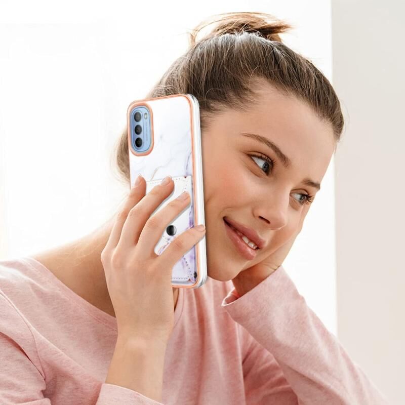 Θήκη κινητού τηλεφώνου με θήκη κάρτας IMD με σχέδιο μαρμάρου για Motorola Moto G31 / G41 (Λευκό Γαλαξιακό Μάρμαρο)