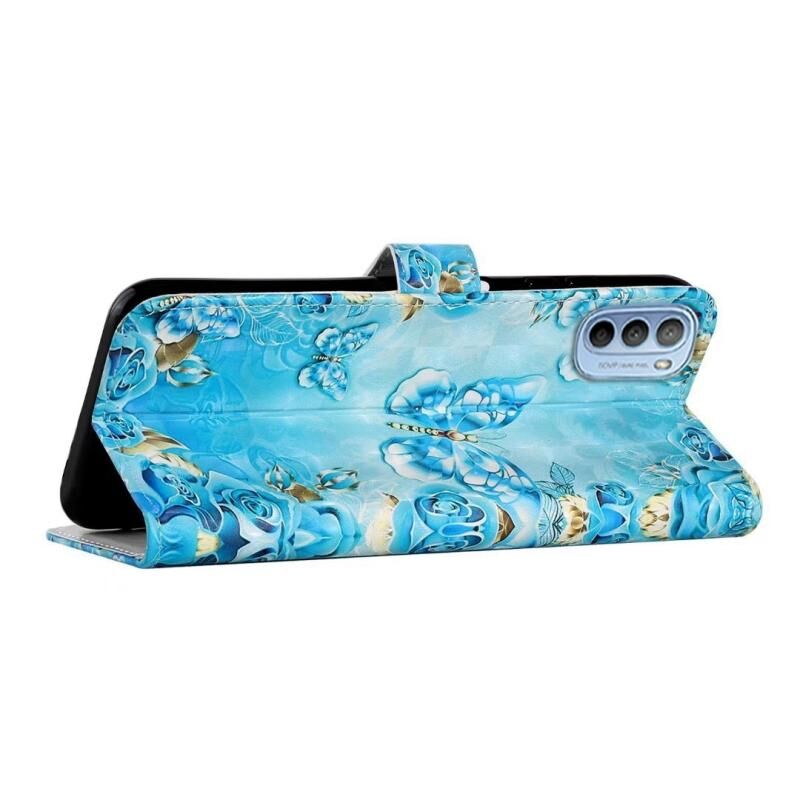 Θήκη τηλεφώνου δερμάτινη με ανάγλυφο σχέδιο λαδιού 3D για Motorola Moto G31 / G41 (Μπλε Πεταλούδες)