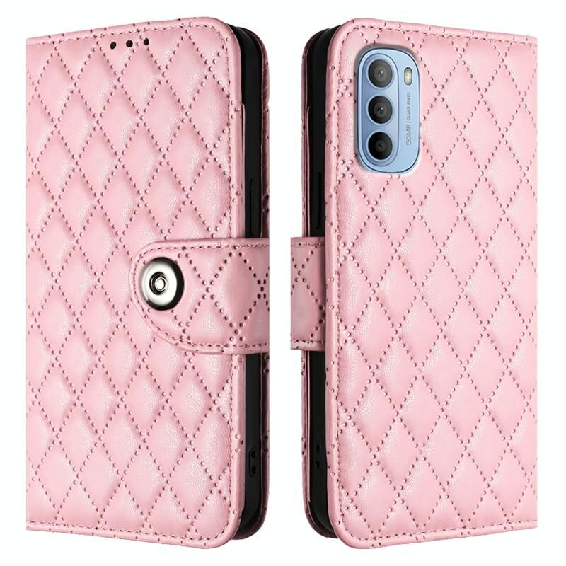 Για Motorola Moto G31 / G41 Rhombic Texture Flip δερμάτινη θήκη τηλεφώνου με κορδόνι (ροζ)