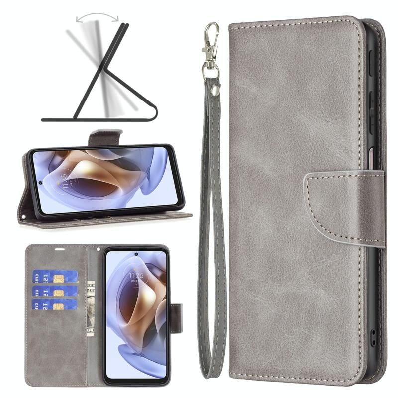 Για Motorola Moto G31 / G41 Πλευρά δακτυλικών αποτυπωμάτων Retro Lambskin Υφή δέρμα τηλέφωνο υπόθεση (γκρι)