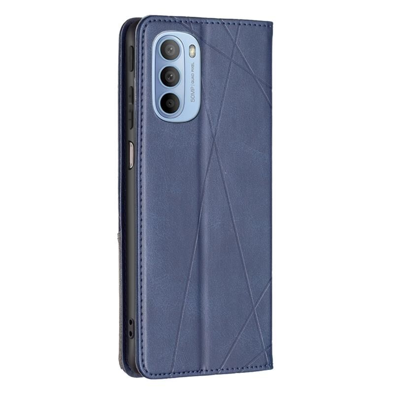 Για Motorola Moto G31 / G41 Πλευρική έκδοση δακτυλικών αποτυπωμάτων Πρισματική αόρατη μαγνητική δερμάτινη θήκη τηλεφώνου (μπλε)