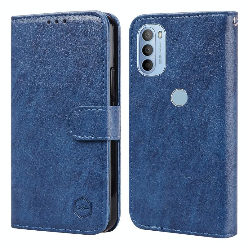 Θήκη κινητού τηλεφώνου για Motorola Moto G31 / G41 με υφή δέρματος λάδι και PU + TPU (Σκούρο μπλε)