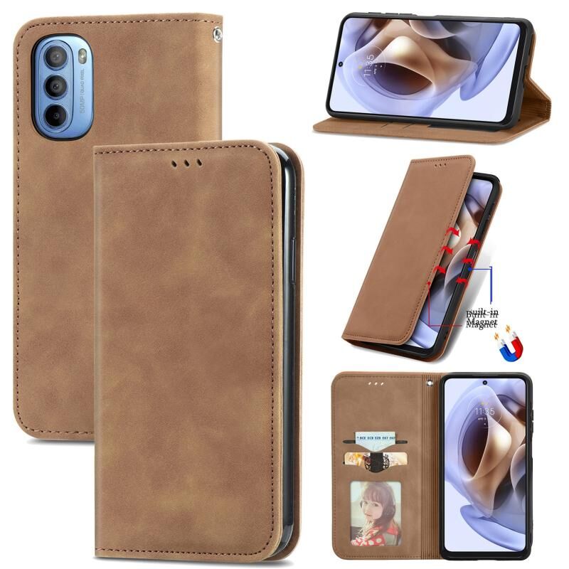 Για Motorola Moto G31 Ρετρό δέρμα αίσθηση μαγνητική οριζόντια Flip δερμάτινη θήκη τηλεφώνου (Καφέ)
