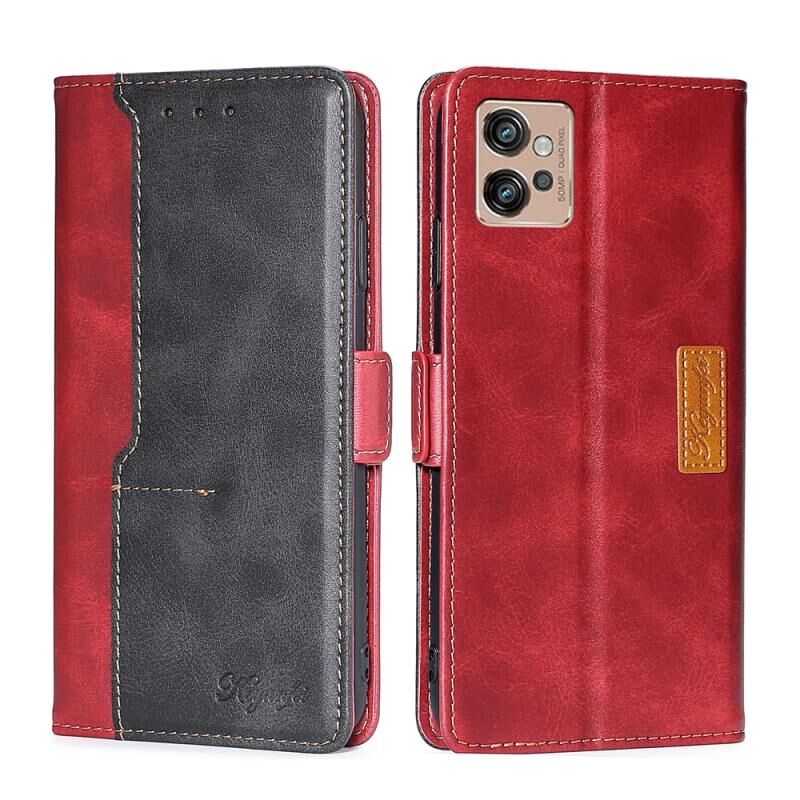 Για Motorola Moto G32 4G αντίθεση χρώμα πλευρά πόρπη δερμάτινη θήκη τηλεφώνου (κόκκινο + μαύρο)