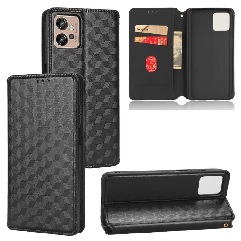 Θήκη τηλεφώνου από δέρμα με υφή Cubic Grid για Motorola Moto G32 4G (Μαύρο)