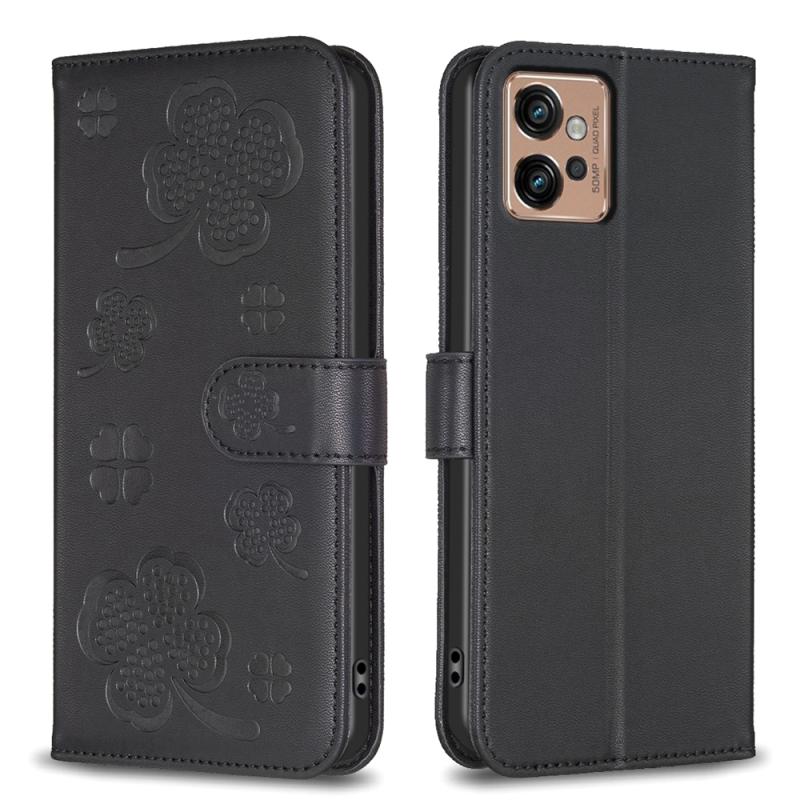 For Motorola Moto G32 4G Four-leaf Embossed Leather Phone Case(Black)