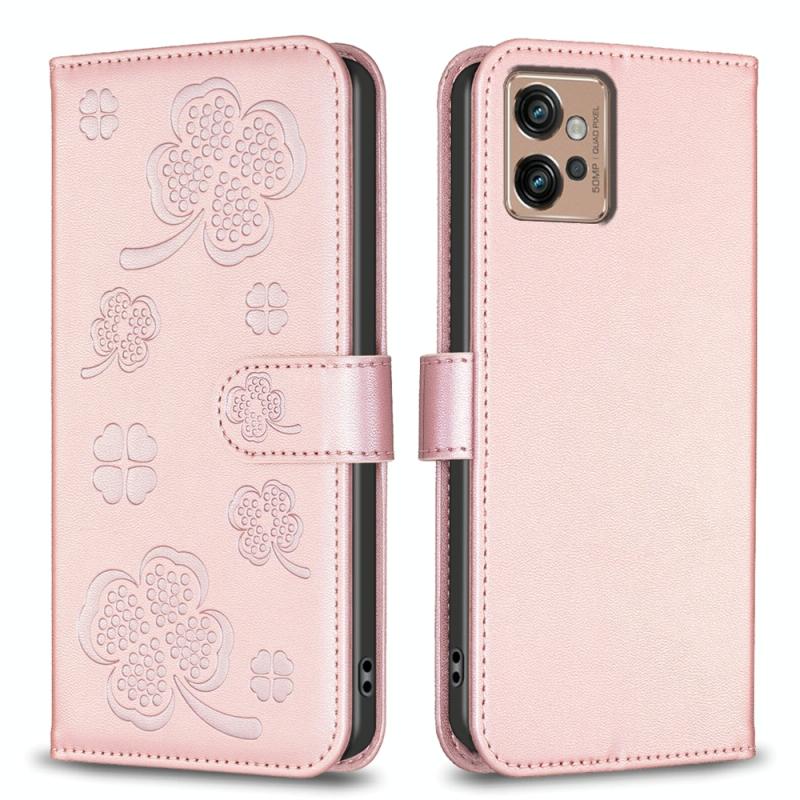 For Motorola Moto G32 4G Four-leaf Embossed Leather Phone Case(Pink)