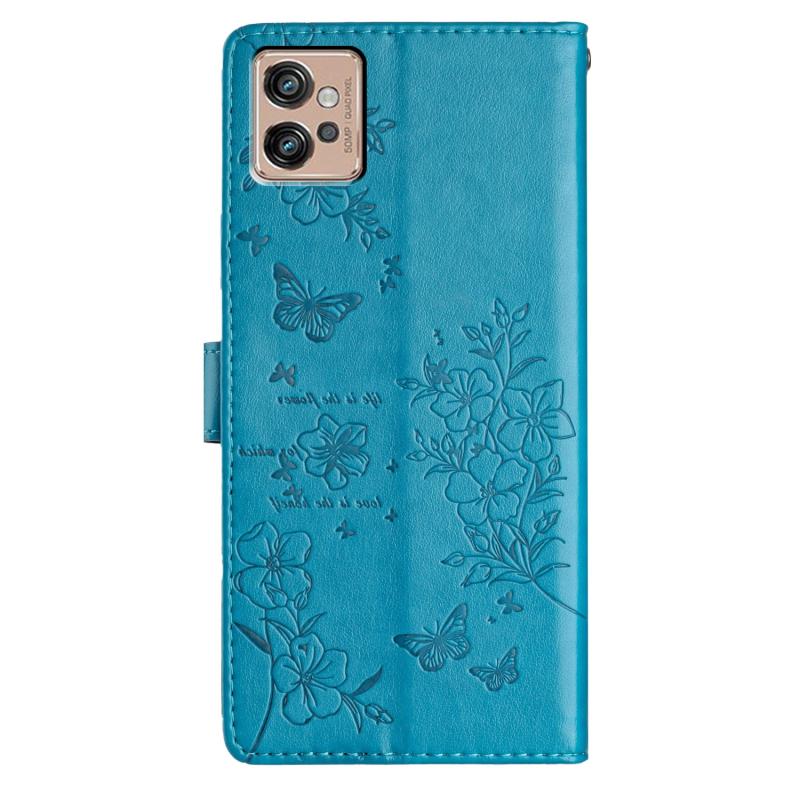 For Motorola Moto G32 Butterflies and Flowers Leather Phone Case(Blue)