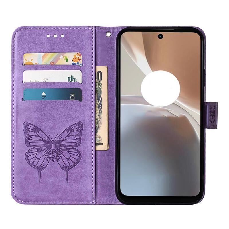 Θήκη τηλεφώνου από δέρμα με ανάγλυφο σχέδιο πεταλούδας για Motorola Moto G32 (Μπλε)