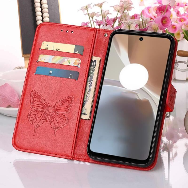 Θήκη τηλεφώνου από δέρμα με ανάγλυφο σχέδιο πεταλούδας για Motorola Moto G32 (Μπλε)
