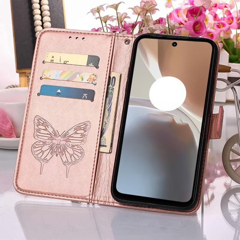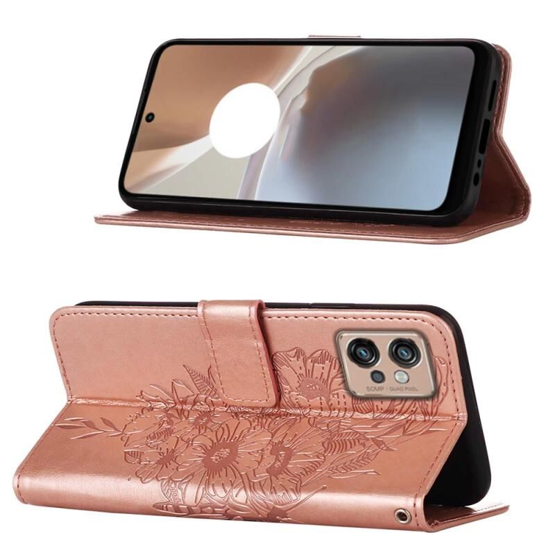 Θήκη τηλεφώνου από δέρμα με ανάγλυφο σχέδιο πεταλούδας για Motorola Moto G32 (Μπλε)