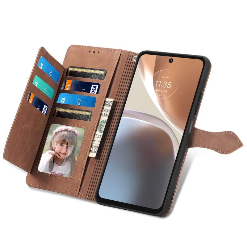 Για Motorola Moto G32 ανάγλυφο λουλούδι φερμουάρ δερμάτινη θήκη τηλεφώνου (καφέ)