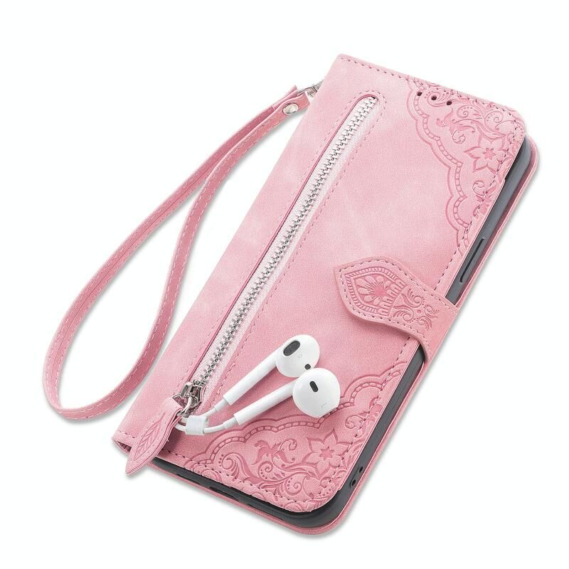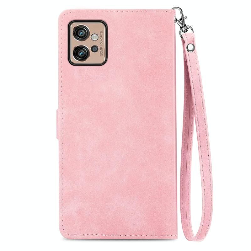 Για Motorola Moto G32 ανάγλυφο λουλούδι φερμουάρ δερμάτινη θήκη τηλεφώνου (ροζ χρυσό)