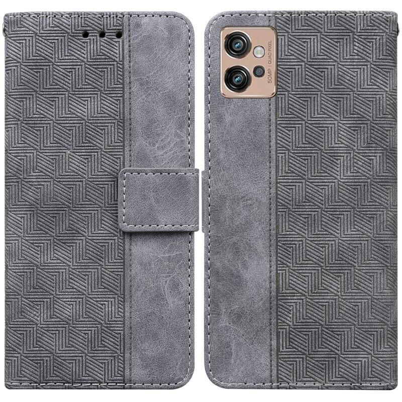 Για Motorola Moto G32 Γεωμετρικό ανάγλυφο Flip δερμάτινη θήκη τηλεφώνου (γκρι)