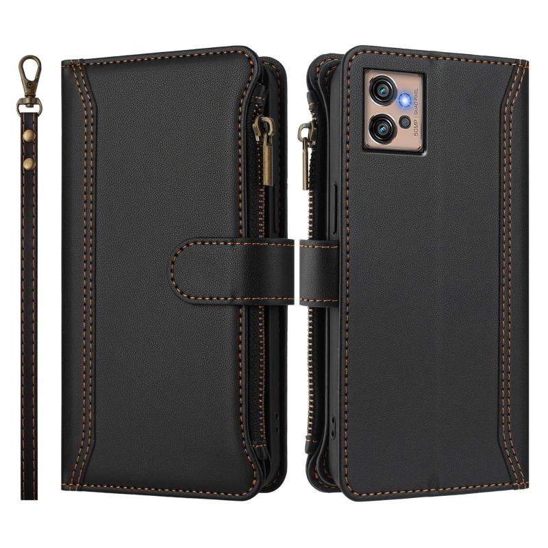 For Motorola Moto G32 Magnetic Closure 9 Card Slots Zipper Leather Case with Hand Strap(Black)