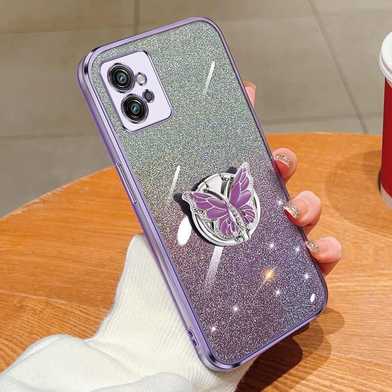 Για Motorola Moto G32 Επιμεταλλωμένο διαβάθμιση Glitter πεταλούδα κάτοχος TPU τηλέφωνο υπόθεση (μωβ)